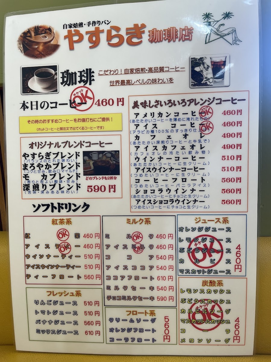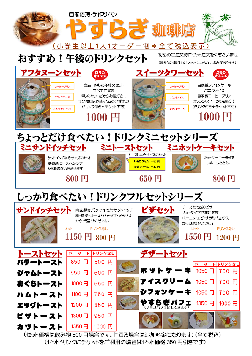 Yasuragi Coffee Ikeda Menu